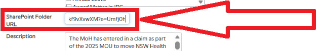 - In the editable view, locate the field labelled SharePoint Folder URL.