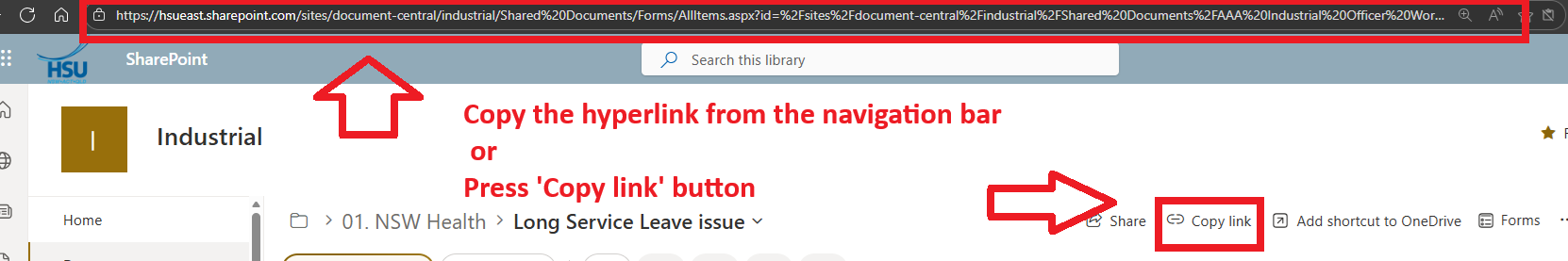 - Click Copy link in SharePoint and copy the generated link.