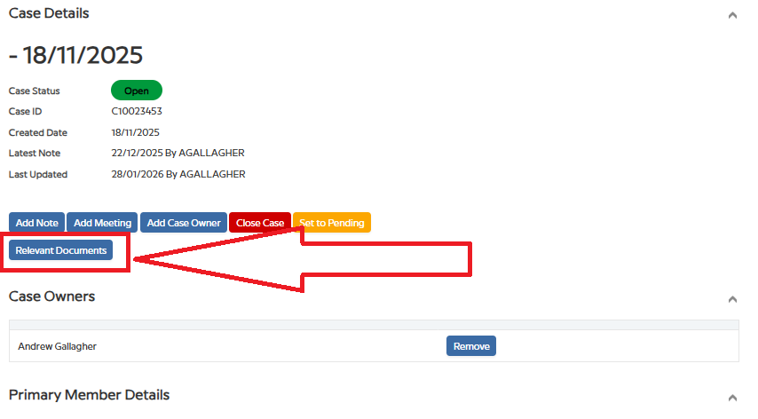 - Click Relevant Documents from the case actions to access the linked folder.