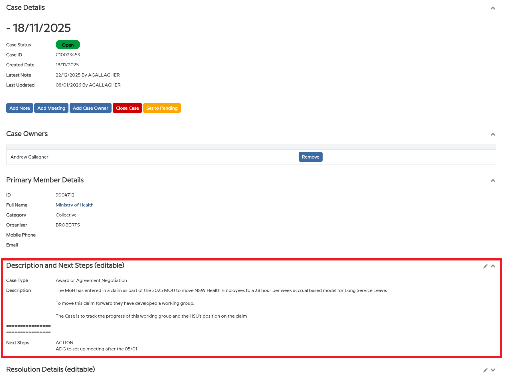 associated with a case and makes handing over cases much simpler.