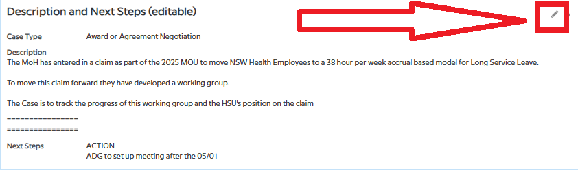 - Click the Edit (pencil) icon in the top-right corner of the Description and Next Steps section.