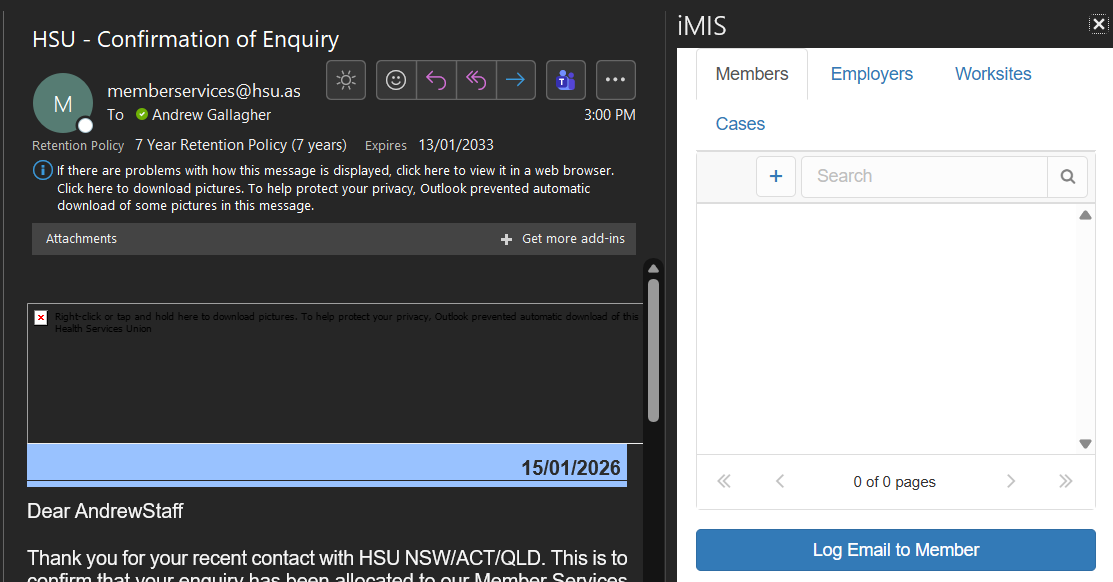Uploading Emails to iMIS (Member Cases and Member Profiles)